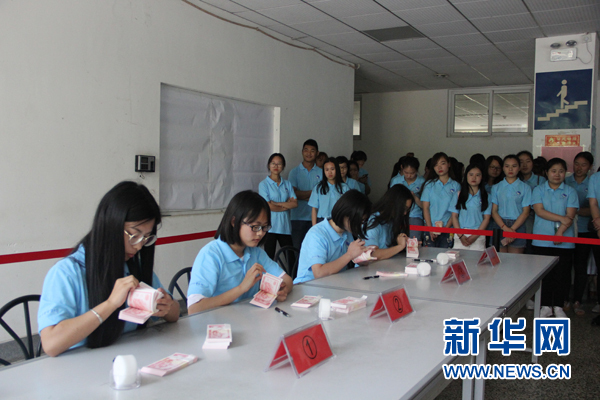 武汉交通职业学院举办的点钞技能竞赛(殷艺宁 摄)