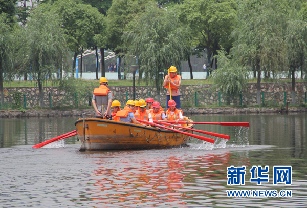 武汉交通职业学院举办的非机动救生艇操纵技能竞赛(殷艺宁 摄)