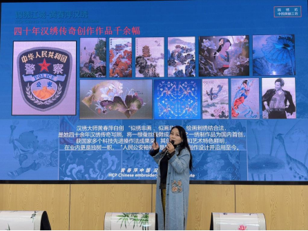 黄春萍老师以“汉绣之美:从楚韵到当代”为主题,通过图文并茂的讲解,带领同学们追溯了汉绣两千余年的历史脉络。从战国时期楚地绣品的灵动纹样,到明清“绣铺林立”的繁荣景象,再到现代汉绣在创新中焕发的新生,黄老师用生动的故事串联起汉绣的“前世今生”。