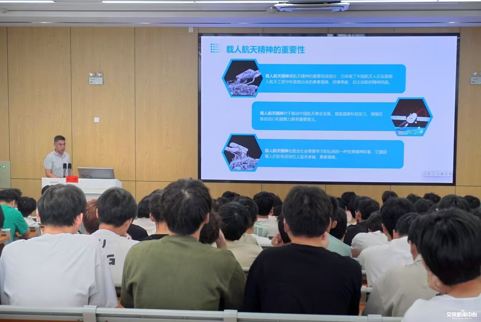 “航空器上的中文界面,使得无数航天人引以为傲;卫星北斗的建成,发展了中国也支撑了世界;神舟十八的成功发射,激发了全国人民的航天热情……”报告会上,邹峰从介绍我国航天事业的发展历史开始,与大家一起回顾了我国航天事业从零起步的奋斗道路。