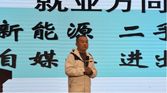 在就业与创业话题中,陈渊结合行业发展趋势提出务实建议。他强调了“精准定位”,提倡提前了解岗位需求、针对性提升技能,并积极参与社会实践以增强人际交往能力。创业方面,他提出“目标引领-方向明确-专注深耕”的路径,并回顾了自己从二手车行业基层做起,逐步成长为销售冠军,最终成功创业的奋斗历程,激励同学们脚踏实地、厚积薄发。